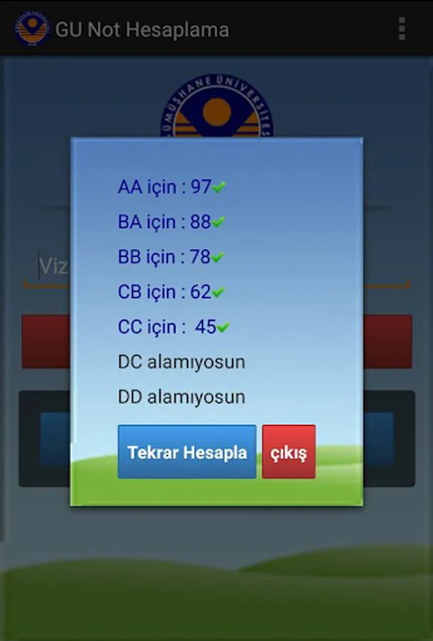 Gumushane University of midterm and final effects, which are organized by the university adopted the following standards.