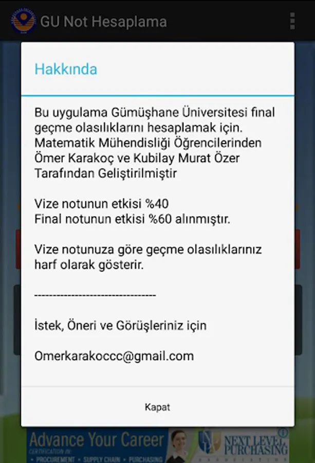 This application of mathematics and was developed by engineering student Umar Karakoçan Kublai Murat Ozer.