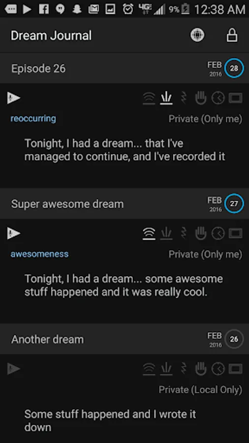 When you wake up, you can record your dreams with our free, secure, PIN-protected Dream Journal. Your entries can be written or voice recorded, can be tagged, and you can even log technique metrics. The Journal also comes with built in access to our free, online Dreammunity system so you can always access your dreams from anywhere and easily share them if you’d like.
