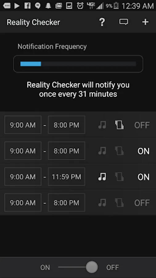 + Reality Checker - Stop looking at your hand, counting your toes, or whatever habit you've been trying to form. The Checker can remember to do it for you, when convenient for you, and then alert you by sound, vibration, or even notification up to 287 times per day.