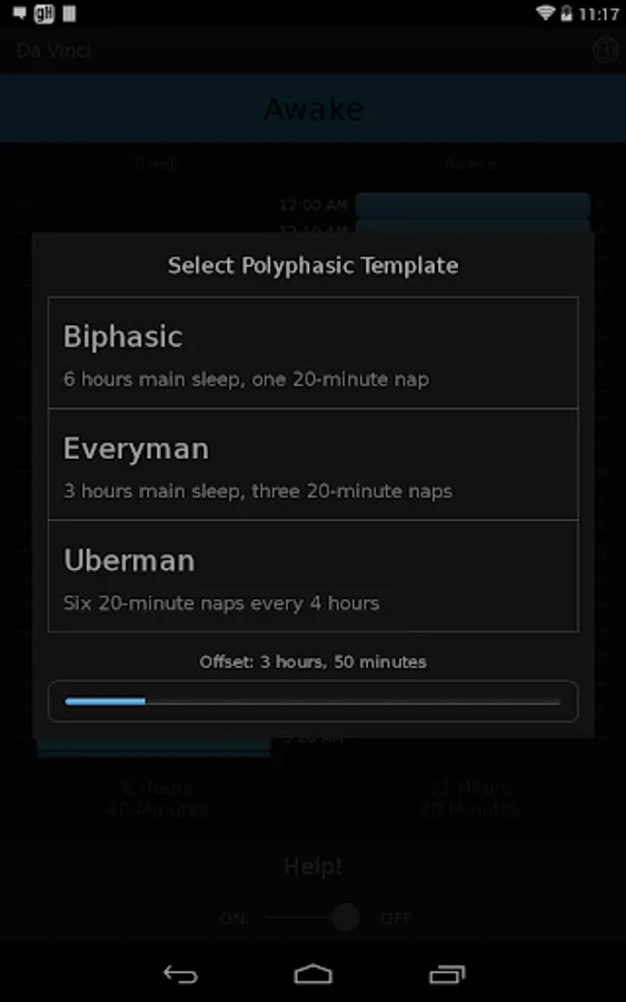 + Da Vinci – Although hard to get used to, cycle adjustment techniques can help you be far more productive throughout the day and even experience more frequent lucid dreams. Da Vinci can help you plan, and adhere to, the best cycles for you (default: Uberman Polyphasic Sleep Cycle).