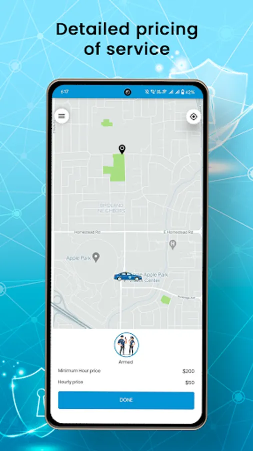 With the Guard-Tec app, security professionals are right at your fingertips. Just open the app, enter your location and security needs, and a nearby security professional will accept your request immediately.