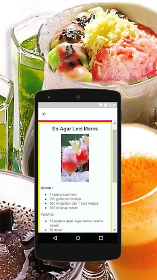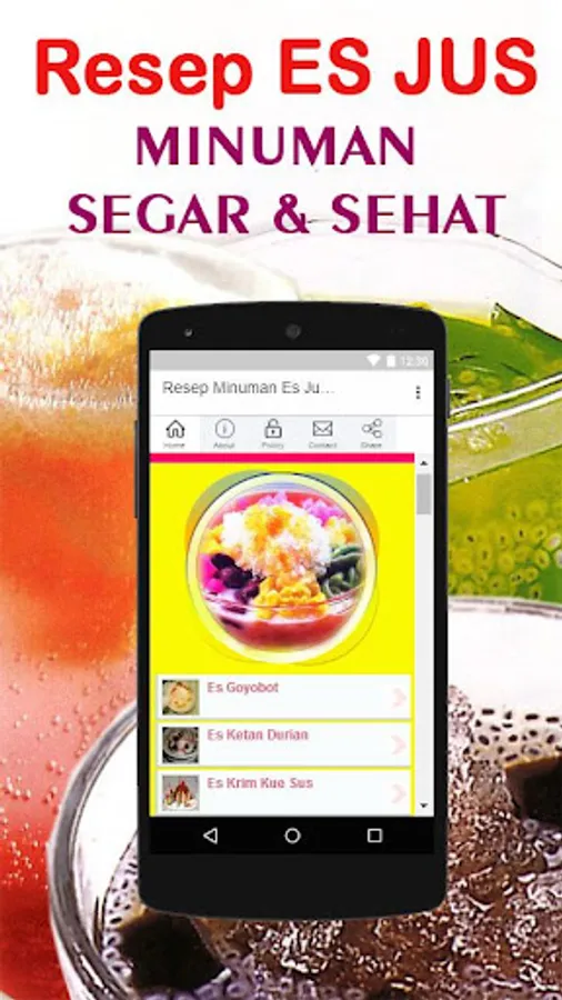 Resep es jus / juice sehat merupakan aplikasi gratis yang memberikan lebih dari 50 aneka macam resep minuman es dan jus / juice yang segar dan sehat untuk di buat sendiri di rumah. Dengan meng-install aplikasi ini maka Anda tidak perlu lagi membaca buku resep atau majalah resep minuman dan lainnya, karena di dalam app ini sudah banyak tersedia resep cara membuat minuman segar dan sehat dengan es atau bisa juga dengan di jus / juice. Cocok juga untuk hidangan buka puasa atau takjil.