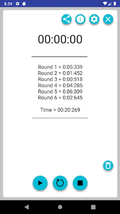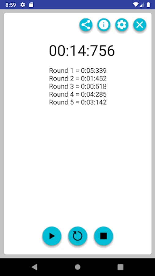 Application for measuring time. Turn-Based and total time. Times can be exported. Furthermore, the possibility is a "bubble" to activate to stop from anywhere in hours.