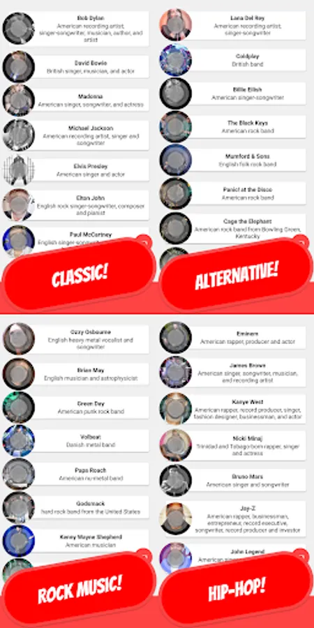 “GUESS THE SINGER Quiz 👨 𝟚𝟘𝟚𝟘 ” is not just a simple Singer quiz app but also a great Singer encyclopedia.