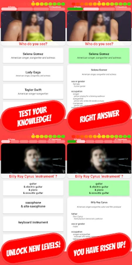 You’ll learn much about Musicer while answering quiz questions! Rise up to new levels!
