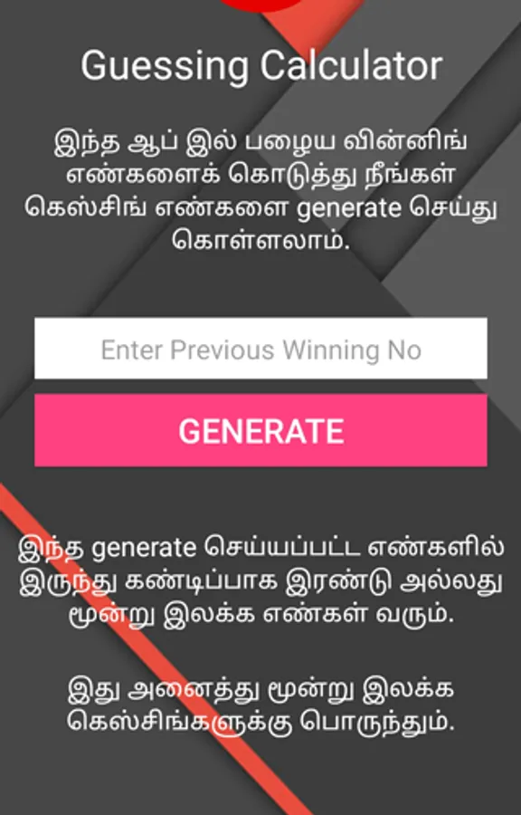 Guessing Calculator provides three digit guessing no for all lotteries.