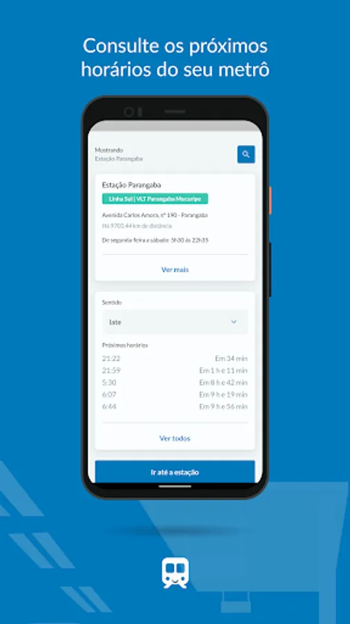 Know all the timetables of the subway stations in Fortaleza that are close to you.