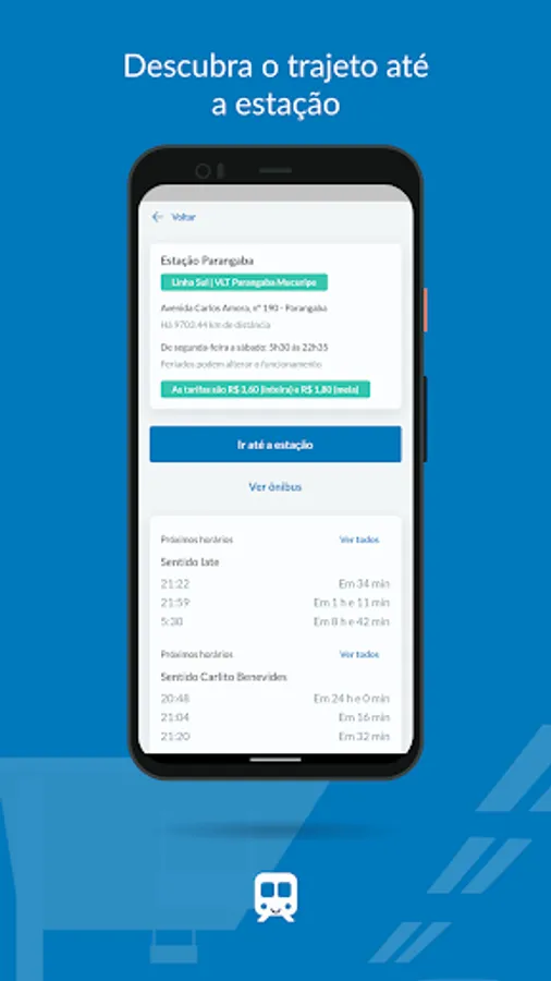 With "Fortaleza Metro Schedules", you can see nearby stations, available lines, timetables and other details, as well as see which buses you can take to get to the desired station. All of this is just a click away.