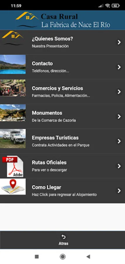 In this application you will find the necessary information for your stay in Cazorla, such as services (pharmacies, food stores, local police ...) 3D visualization of the monuments in the area, routes for hiking, multi-adventure companies, locator and contact of the house ... with this tool you will have all the information so that your visit to Cazorla is unforgettable