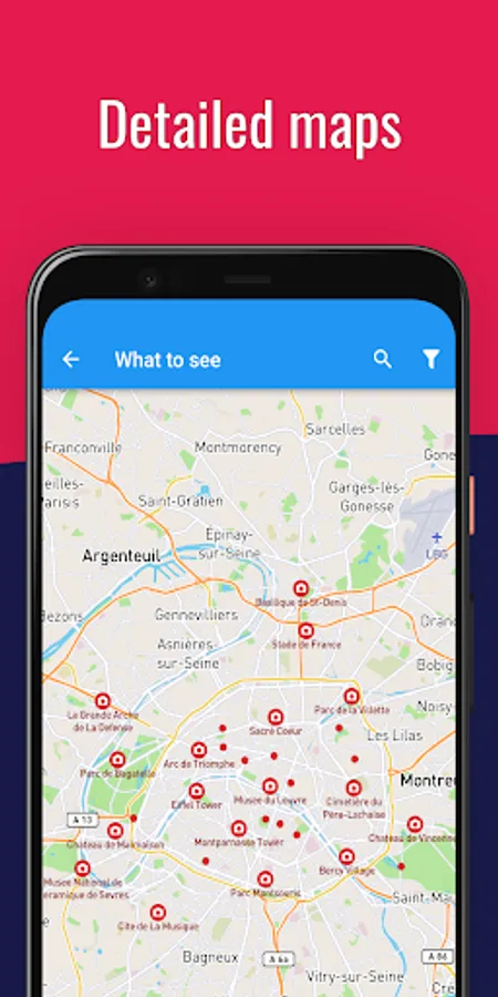 Have all the information offline and freely portable. For each destination, access comprehensive and up-to-date information covering thousands of places, attractions, points of interest and many hotel booking options within this Paris travel guide.