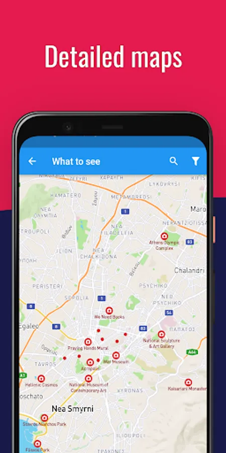Have all the information offline and freely portable. For each destination, access comprehensive and up-to-date information covering thousands of places, attractions, points of interest and many hotel booking options within this Athens travel guide.