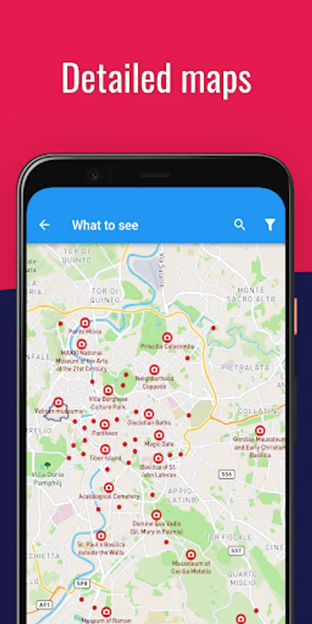 Have all the information offline and freely portable. For each destination, access comprehensive and up-to-date information covering thousands of places, attractions, points of interest and many hotel booking options within this Rome travel guide.