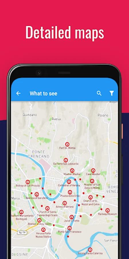 Have all the information offline and freely portable. For each destination, access comprehensive and up-to-date information covering thousands of places, attractions, points of interest and many hotel booking options within this Verona travel guide.