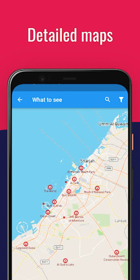 Have all the information offline and freely portable. For each destination, access comprehensive and up-to-date information covering thousands of places, attractions, points of interest and many hotel booking options within this Dubai travel guide.