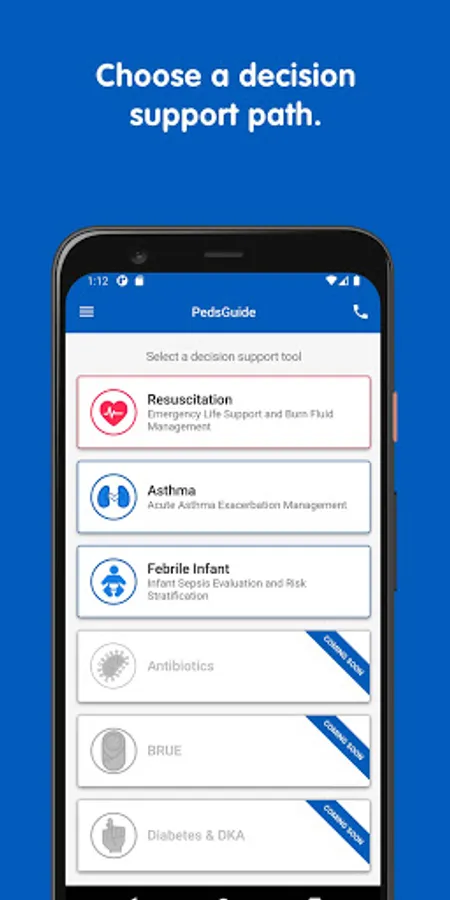 PedsGuide is a multi-module pediatric clinical decision support tool intended for use only by professional health care providers and emergency personnel for informational and educational purposes. *Each module provides users with a step-by-step interactive clinical decision support process, including reference material and/or contextually relevant information based on evidence-based practice and expert opinion routinely used in clinical practice, to assist in management of various acute illnesses in children.