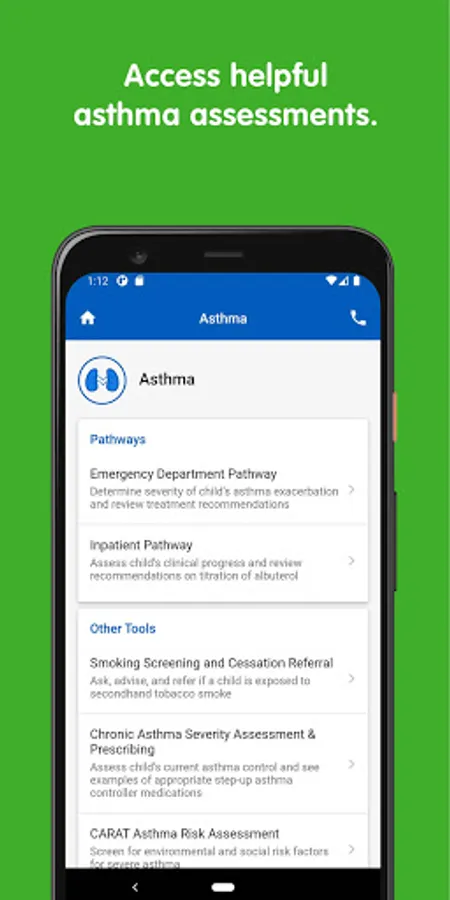 The modules have been designed and optimized by an interdisciplinary team of clinicians, pharmacists, medical librarians, Human Factors scientists, and innovations professionals. Human Factors methodology was leveraged to guide interfaces that provide rapid access to information and assessment tools, which facilitate an efficient aid for care management while decreasing cognitive load for the user. Additionally, for users who seek care for patients at The Children’s Mercy Hospital, PedsGuide features a quick-call feature to contact the Children’s Mercy Contact Center and Critical Care Transport Team in our service area.