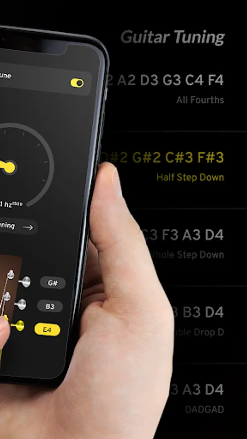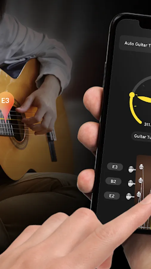 No touching or adjusting is needed. Open the free Guitar tuner and start tuning the Guitar. The easiest way to tune your Guitar with a simple, accurate, and hands-free Guitar tuner app.