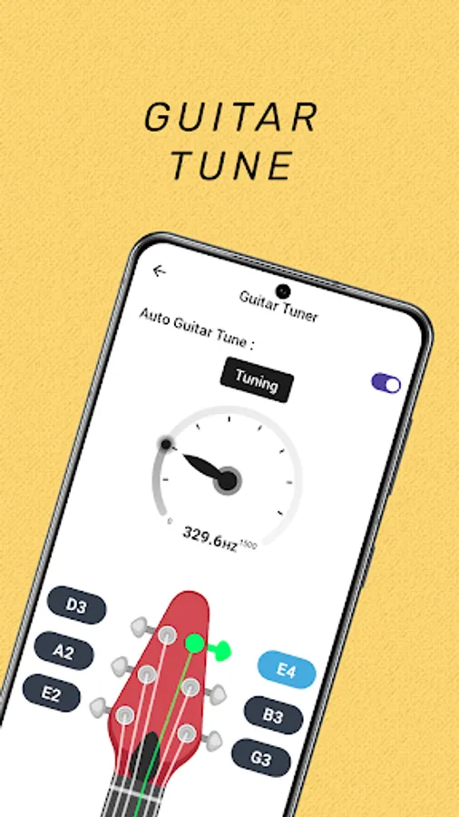 No touching or adjusting is needed. Open the free Guitar tuner and start tuning the Guitar. The easiest way to tune your Guitar with a simple, accurate, and hands-free Guitar tuner app.