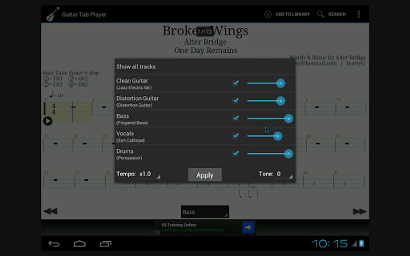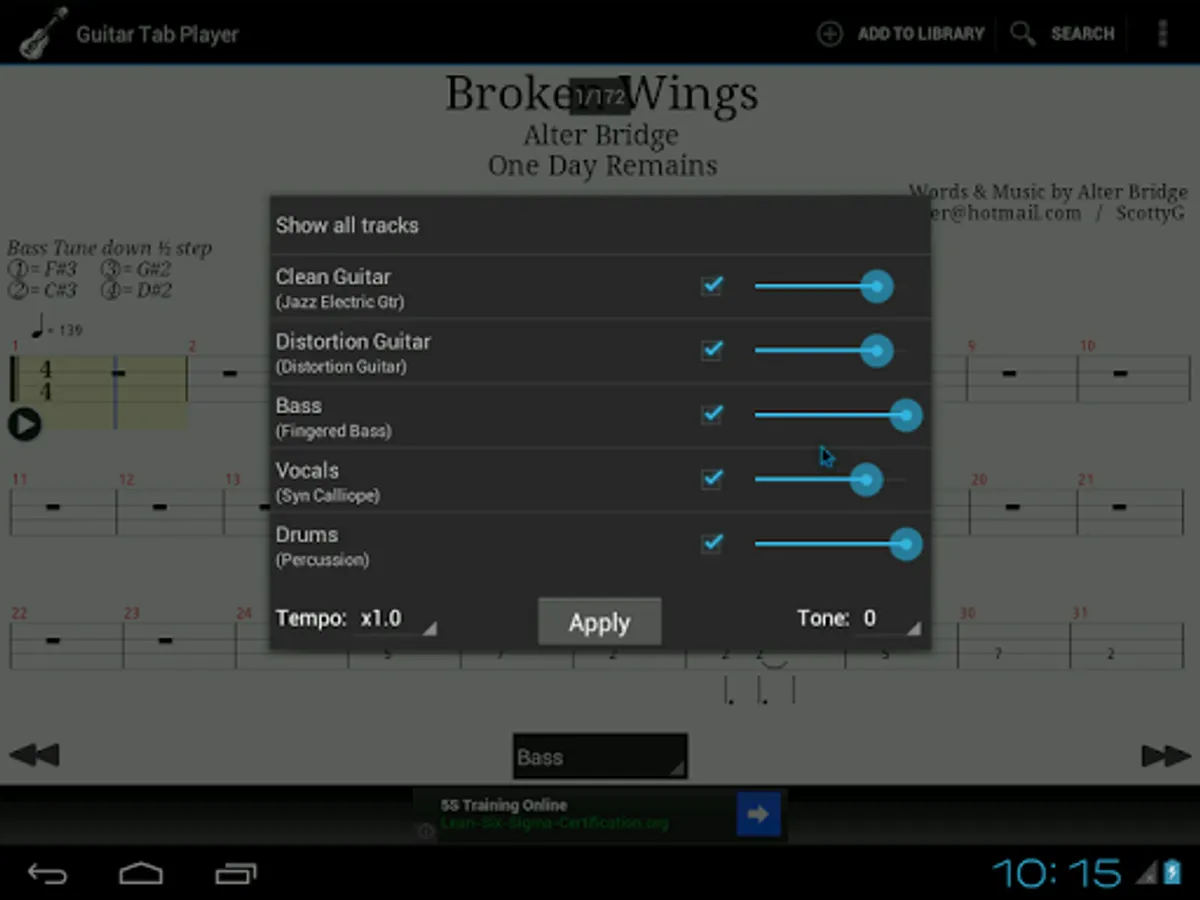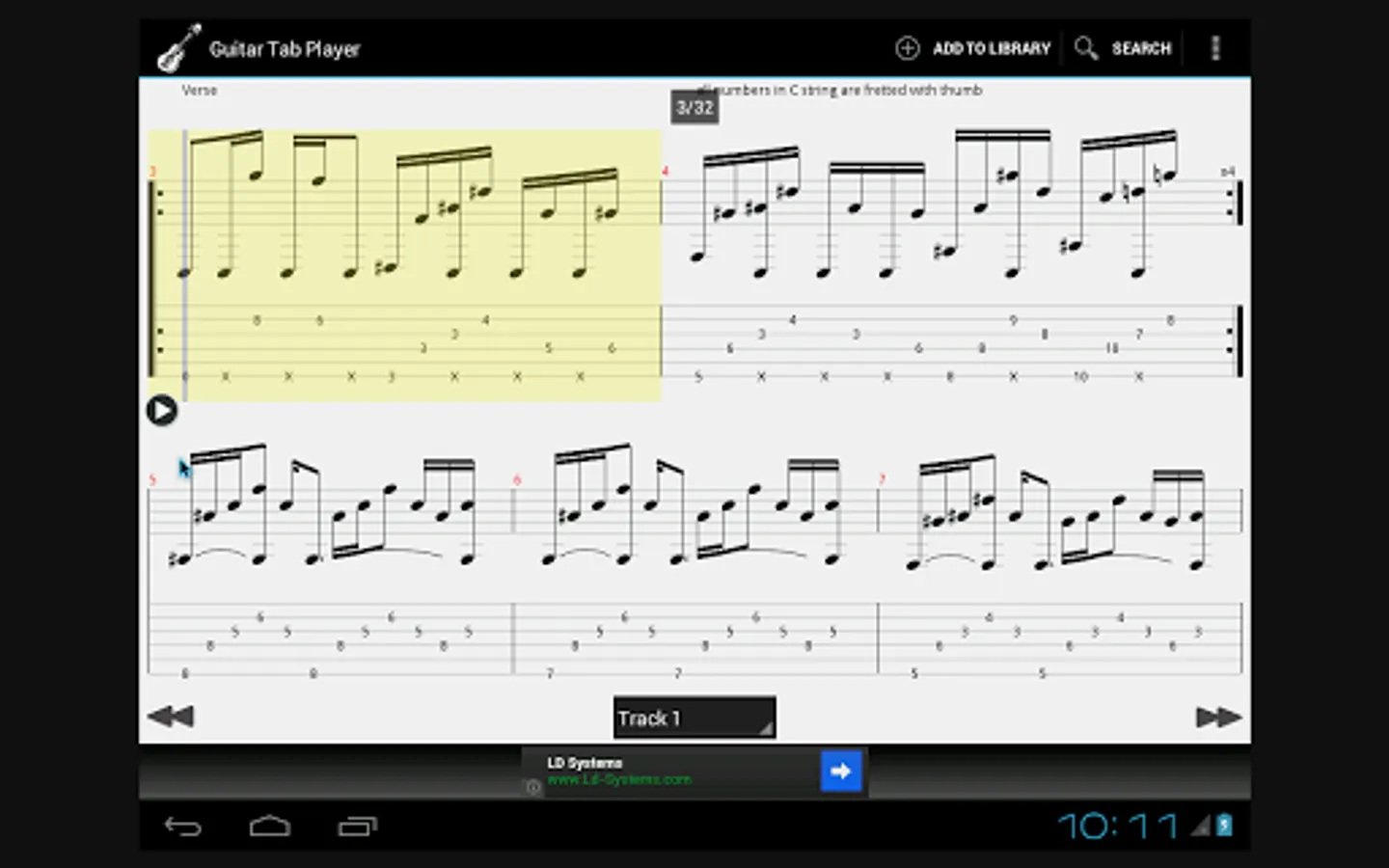 Guitar Tab Player is a simple and very fast tablature reader and player with HD quality. It allows you to watch and play your tabs and music notation, simply and quickly.