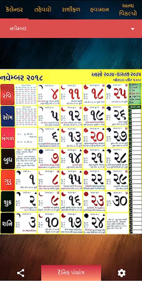 Gujarati Calendar- Panchang 2023 2022 with All Festivals, Rashifal, Sun/Moon Timings.