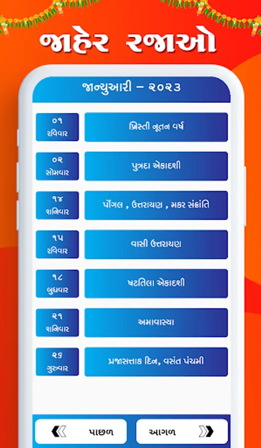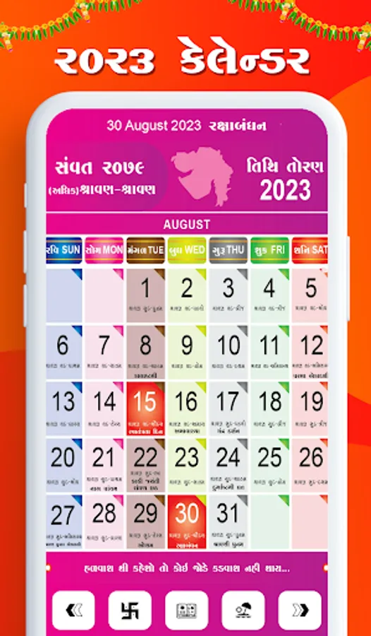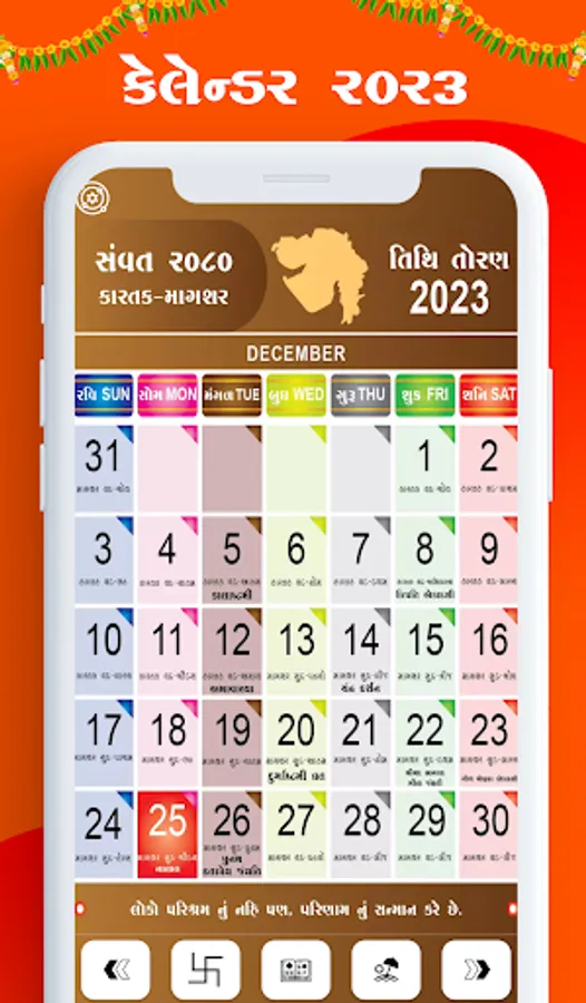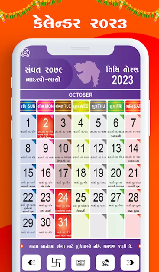 Free calendar almanac app for Gujarati people (Also known as Gujarat calendar 2023).