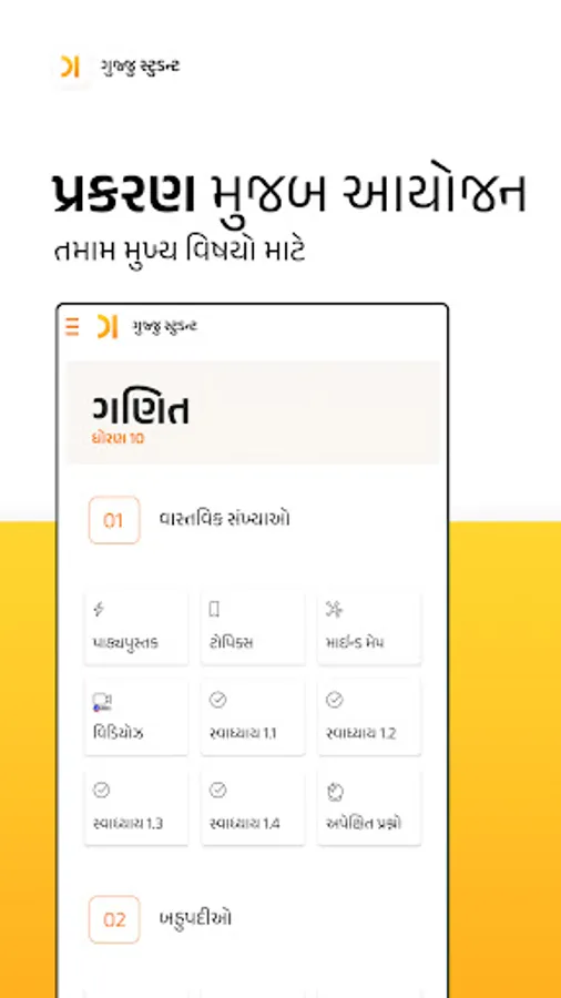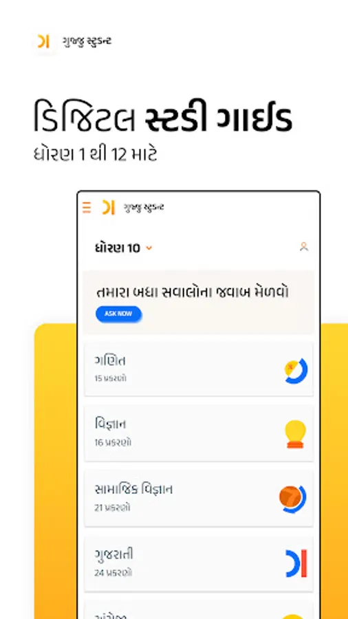 The "Gujju Student - GSEB Guide" app helps you to learn, practice and manage your learning according to GSEB curriculum. Gujju Student app has all textbooks, exclusive engaging, animated and interactive videos, along with LIVE Classes and practice papers with the latest GSEB Gujarat Board pattern based on NCERT Textbooks in Gujarati. Gujju Student app has all essays in the section, Nibandh Mala.