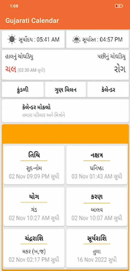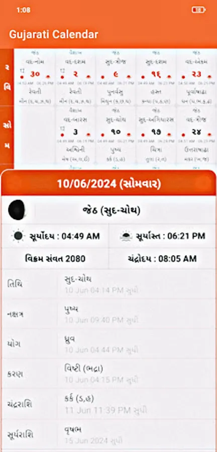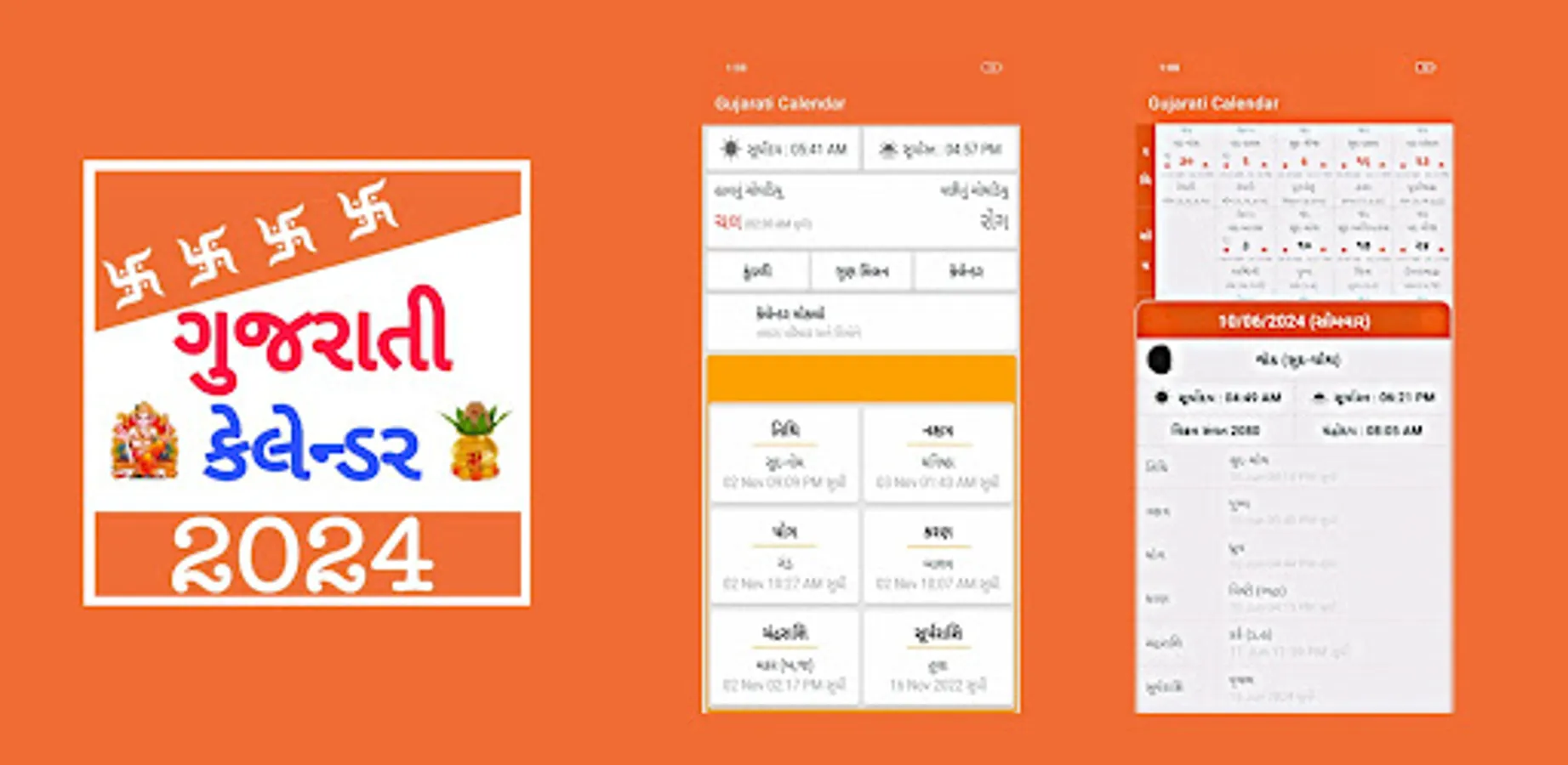 2024 Gujarati Calendar: Lots of information at your finger tips such as Festivals and Panchang. Tithi & Thoran details are also displayed neatly in the app. App also has special features such as Jamrashi Vrat katha Rashifal Choghadia and Kundali