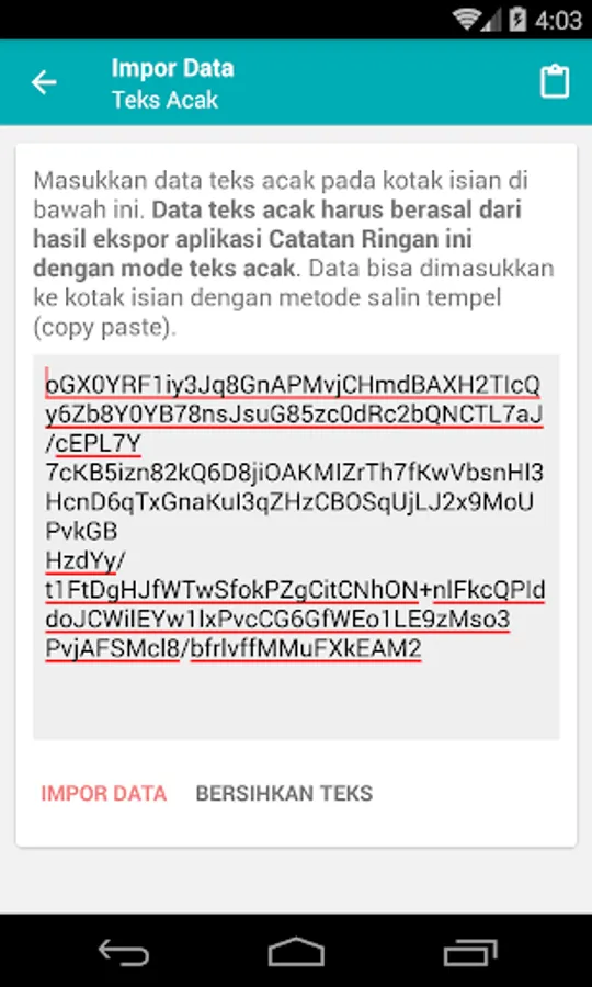 You can export your notes with encryption mode. Where records will be altered and randomized into characters difficult to read. And random text that you can copy paste (copy and paste) into another text editor and sent to others. You can restore a random text and encryption are only using the Notes application this Light. Where you have to use the data import mode on the main page of the application.