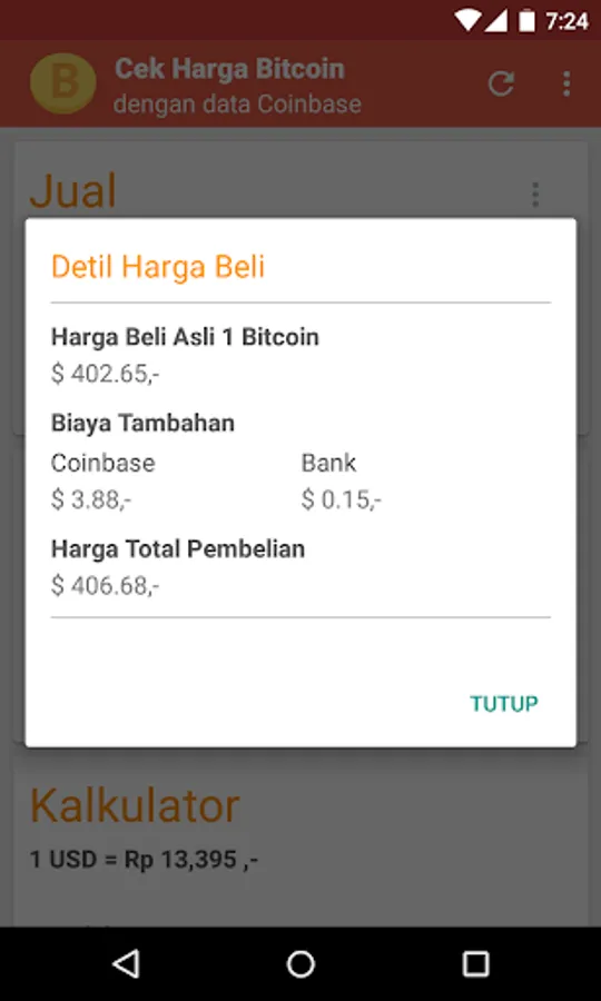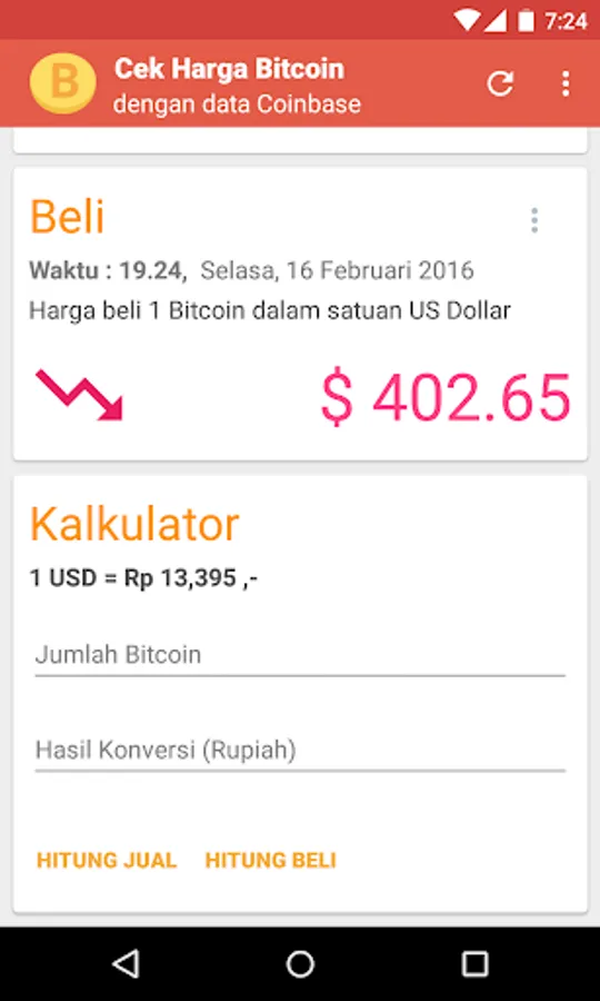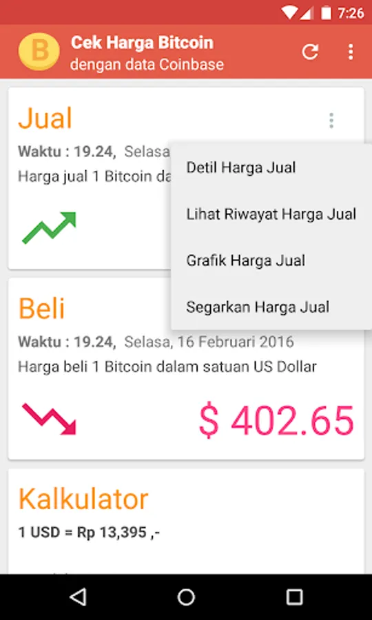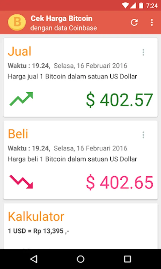 This application is a simple application to monitor the purchase price and the selling price of digital currency called Bitcoin. Sources of data used by this application bersumberkan of data available on the vendor selling services purchasing third party.
