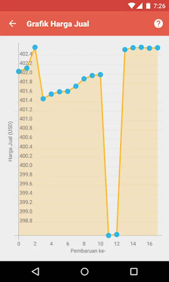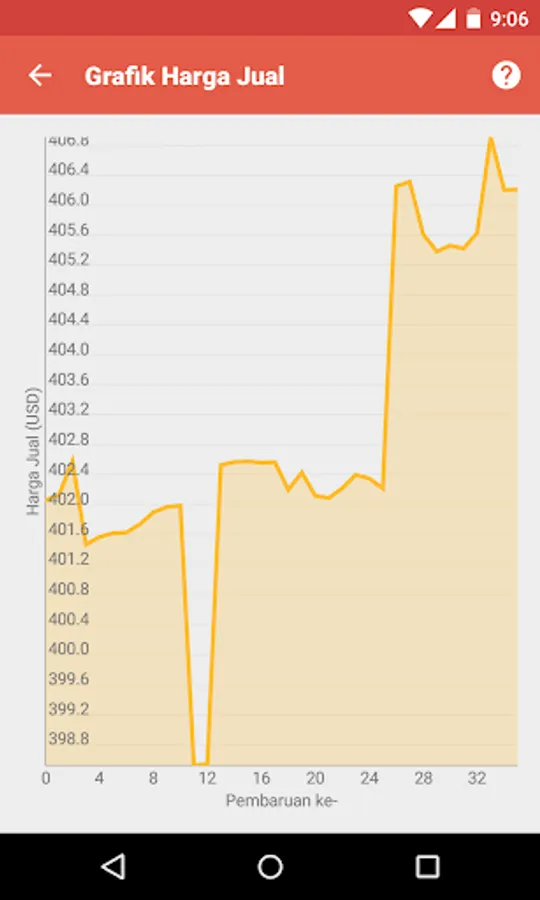 Users can see the patterns and trends of price changes by using graph diagram provided. Data shown in the chart is the old price data that has been recorded in the history of the price in the application, when users refresh data.