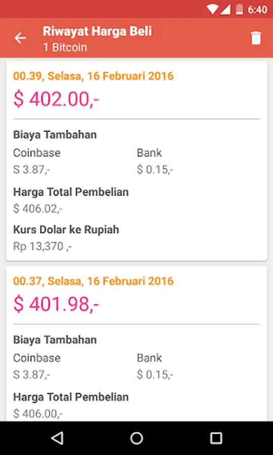 Users can calculate the value of digital currency into Rupiah exchange rate with the help of a simple calculator that has been provided by this application.