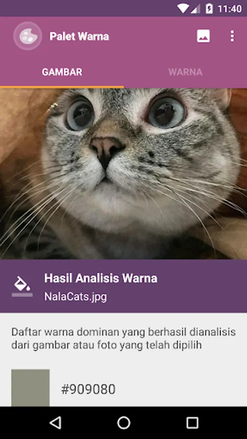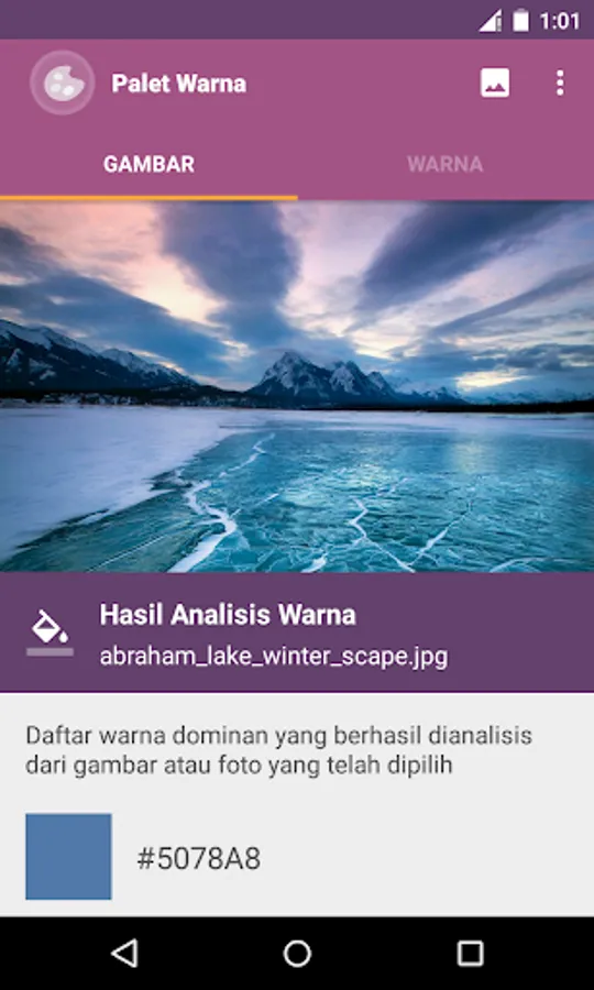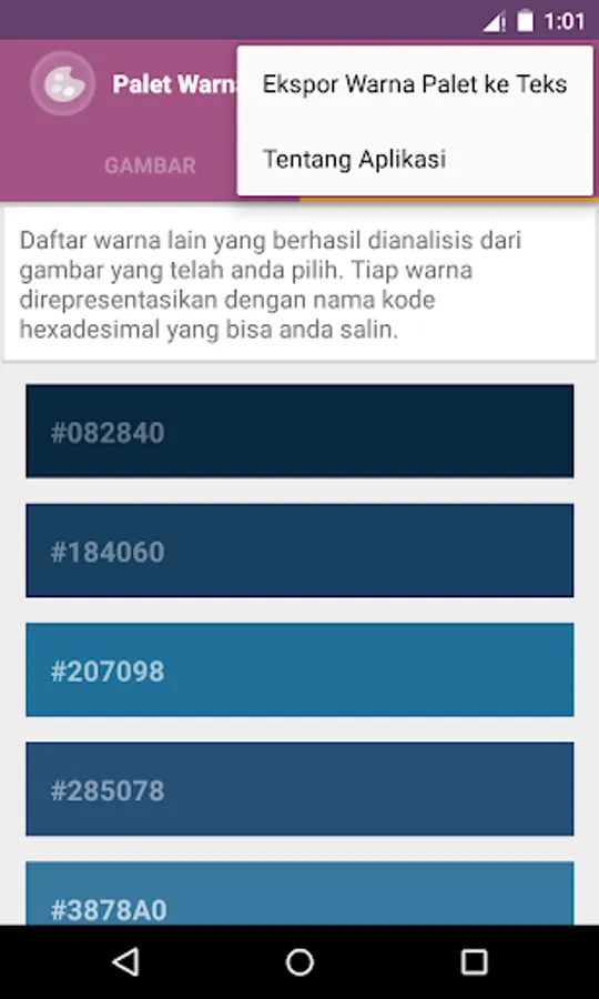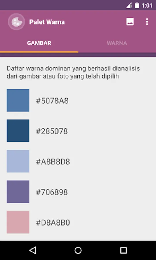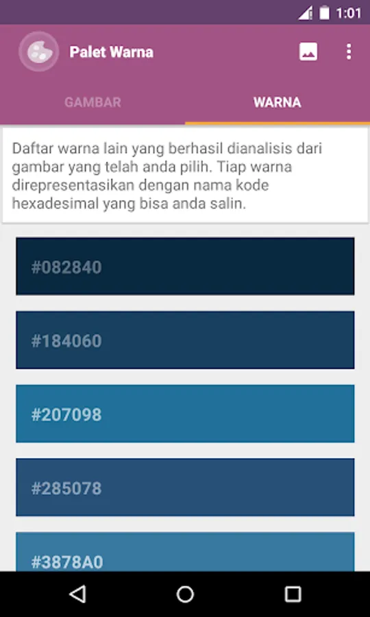 Applications Color Palette is a simple app to take on color and color-coding (hexadecimal code) of images or photos stored in an album or image gallery of your device.