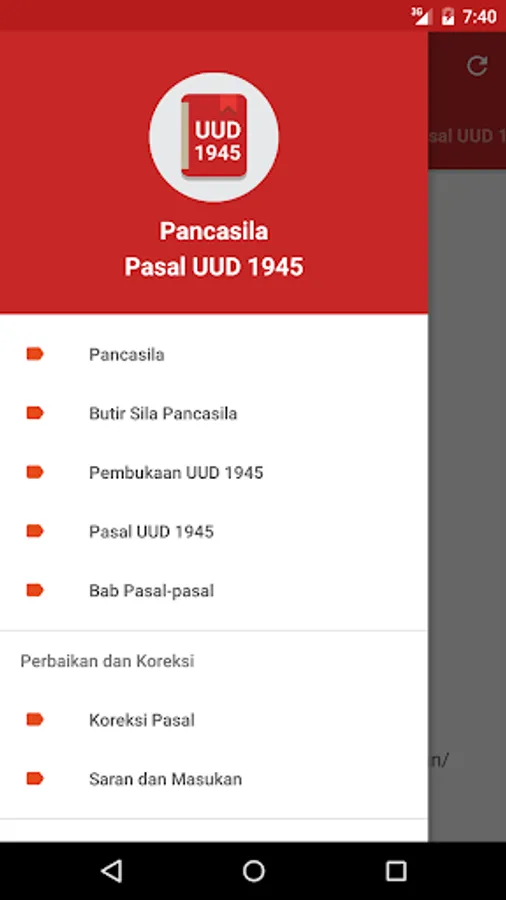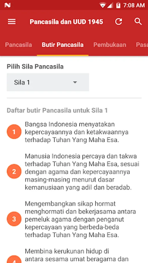 This application is a simple application that contains a list of Pancasila, Pancasila points, Preamble and articles of the 1945 Constitution.