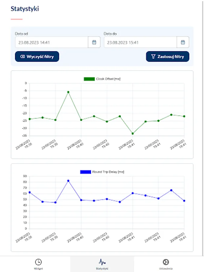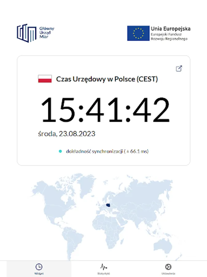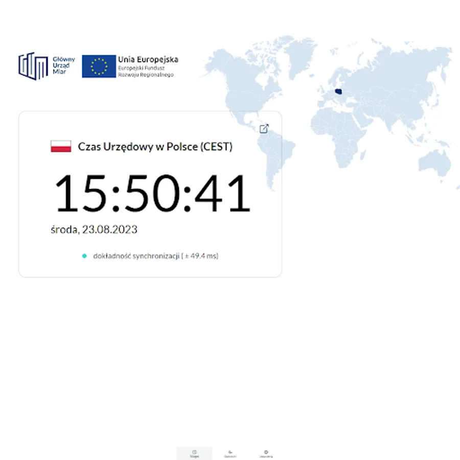 The "E-CzasPL Clock" application is a response to the need to synchronize the system time of mobile devices, when there is a need to act in accordance with the law (with regard to time), in accordance with common standards of quality and / or safety, as well as when there is a need to ensure measurement consistency time used by the user with the official time in Poland. The application allows for easier access to the synchronization of the device's system time with the official time in the territory of the Republic of Poland, or allows for determining the differences between the system time and the official time, taking into account link delays (transmission asymmetry) for individual customers or industry representatives who use commonly used operating systems to activities in which time plays a key role (e.g. industrial process control, users of electronic public procurement platforms and those handling various competition procedures).