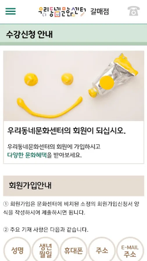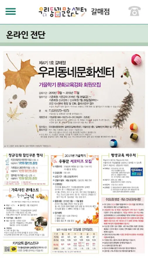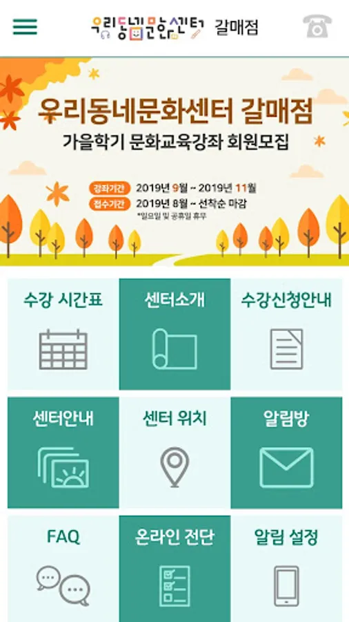 You can check the course information, class schedule, center information, member PUSH notification services provided by our local culture center dealers.