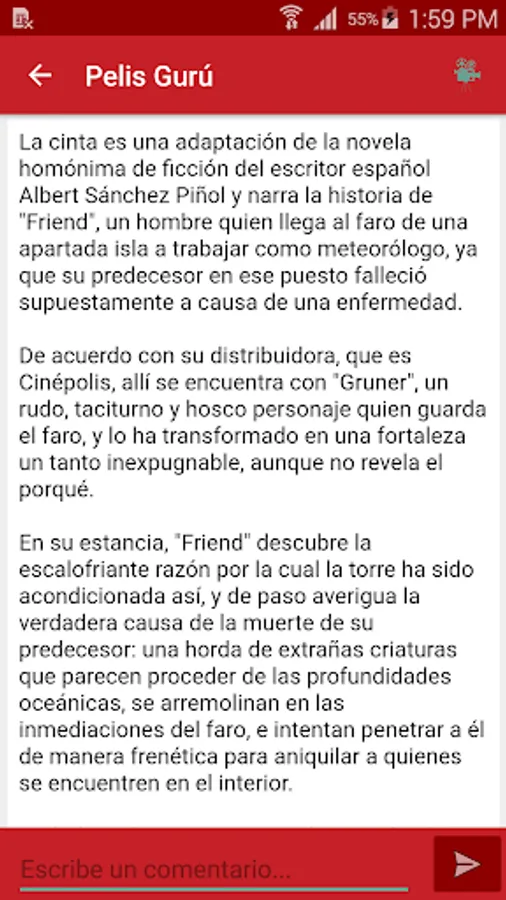 Always have on hand the most recent information of the movies of the moment. Get to know the reviews and opinions of the premiere films. Know the opinions about the most important directors and become an expert.