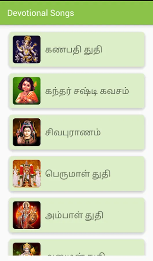 1. Devotional Songs in Tamil in Tiny size App. No MP3 Playback and No Internet Streaming.