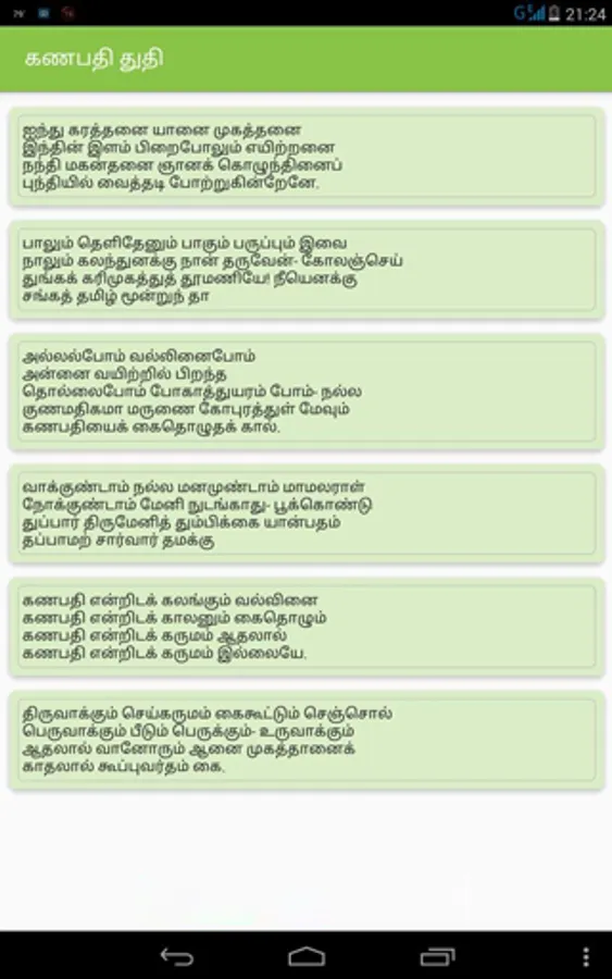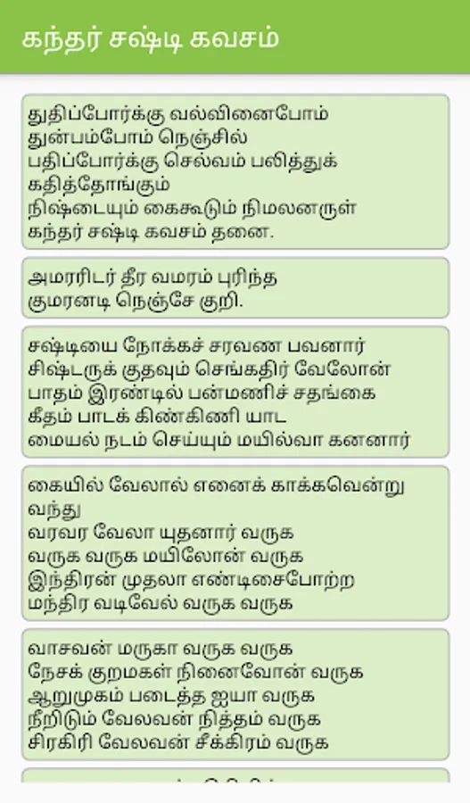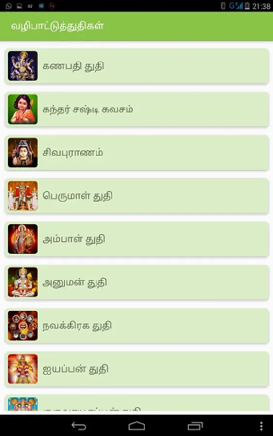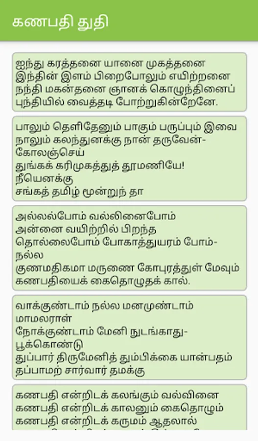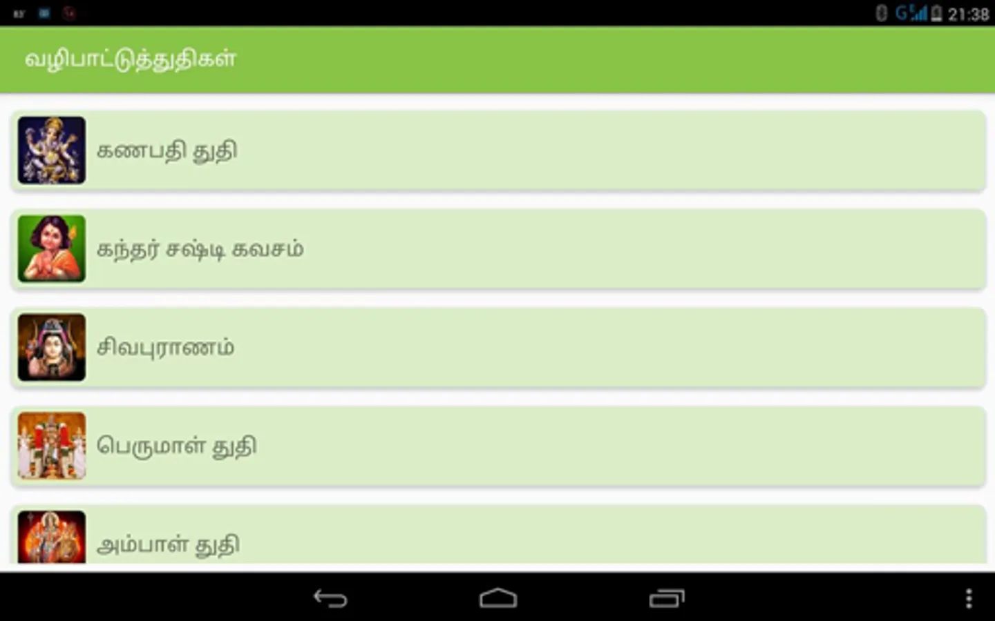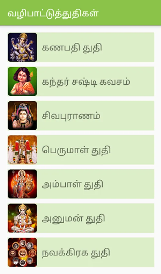5. Ganapathi thuthi , kantha Sasti Kavasam, Sivapuranam, Perumal Thuthi, Ambal Thuthi, Hanuman thuthi, Navagraka Thuthi and Mantras.
