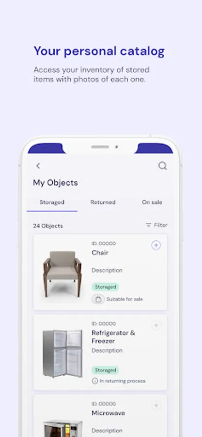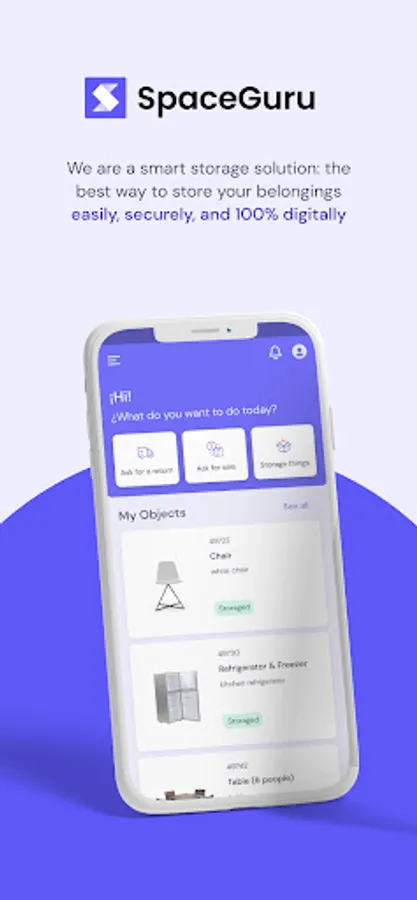 Through our app, you can access a personalized catalog of your items stored in SpaceGuru. This way, you always have them at hand with photos of each item, and you won't forget what you stored.