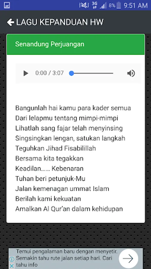 This application contains a collection of songs scouting Hizbul Wathan most of which could be enjoyed or heard without internet access.