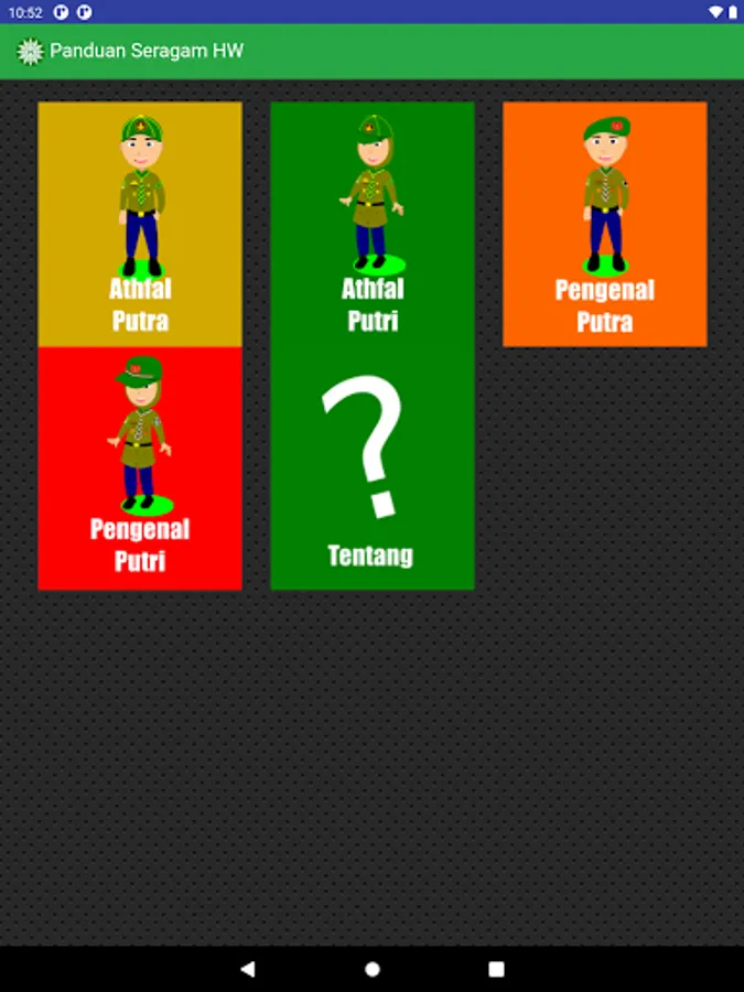 This application was developed to make it easier for students to learn the uniforms and attributes worn on the Hizbul Wathan uniform
