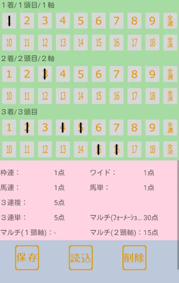・馬番を選択(タップ)して下さい。