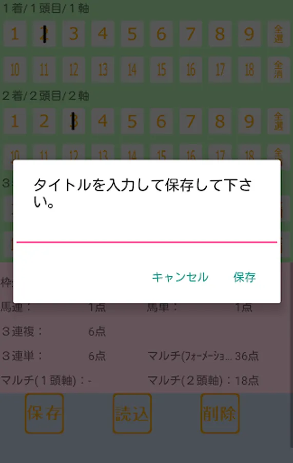 ・馬券点数はアプリに保存可能