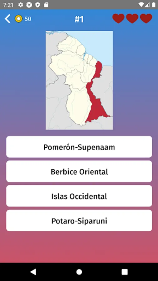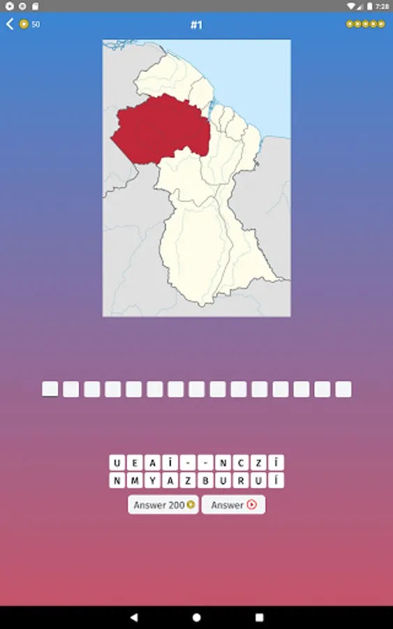 - Blank map: in case you have difficulties, you can use this mode to memorize shapes of Guyana in map puzzle.