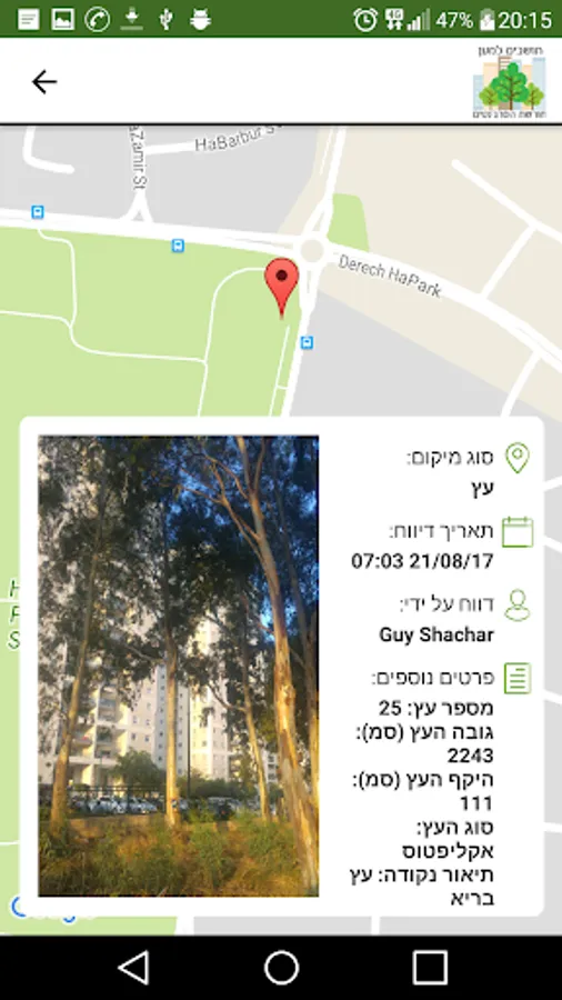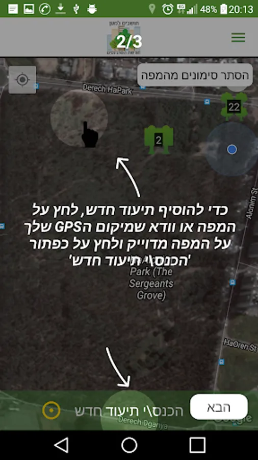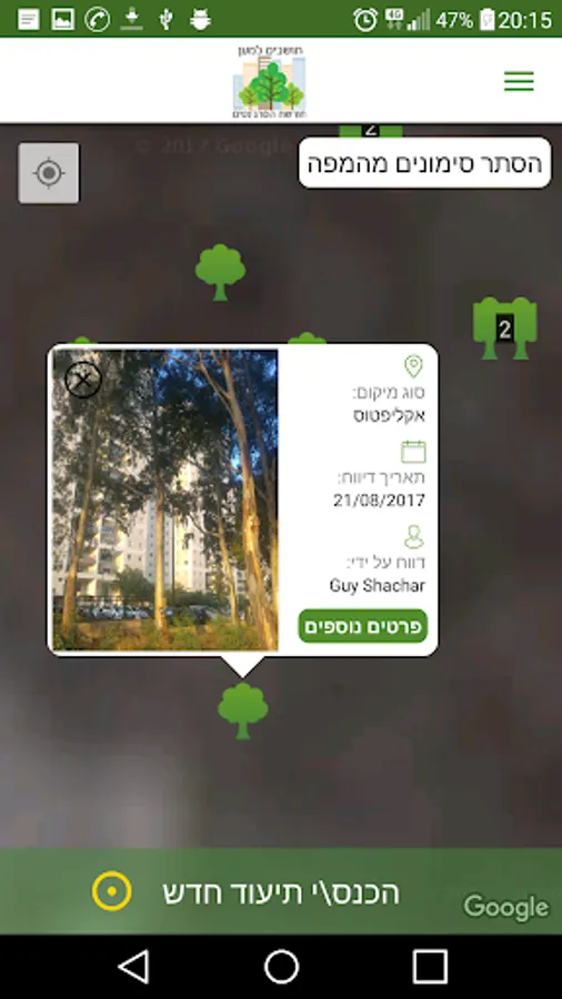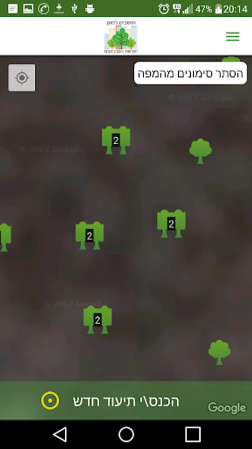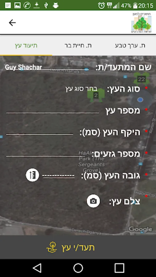 The app was developed to allow the community to document the natural values in the woods, to mark trees, animals and terrorists into the woods.