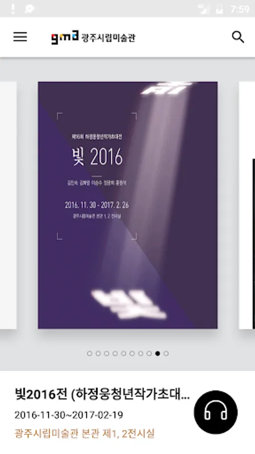 Gwangju Museum of Art Exhibition Dawting app allows you to view exhibition and exhibits information regardless of time and place. Also, you can see the exhibition room through the Internet of Things (beacons) while viewing the museum directly. You can get