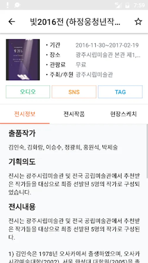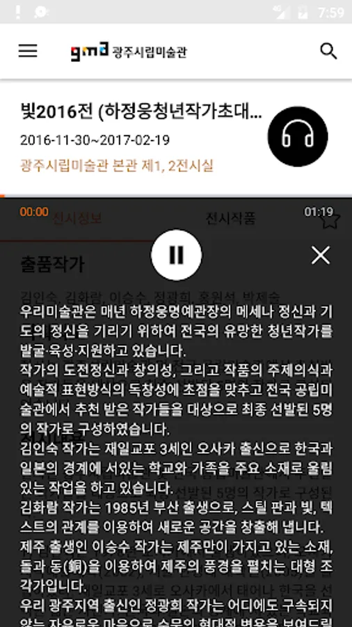 Through the smartphone, various exhibits such as permanent exhibitions and planning exhibitions of Gwangju Museum of Art, which exhibits and introduces various works, have been serviced.