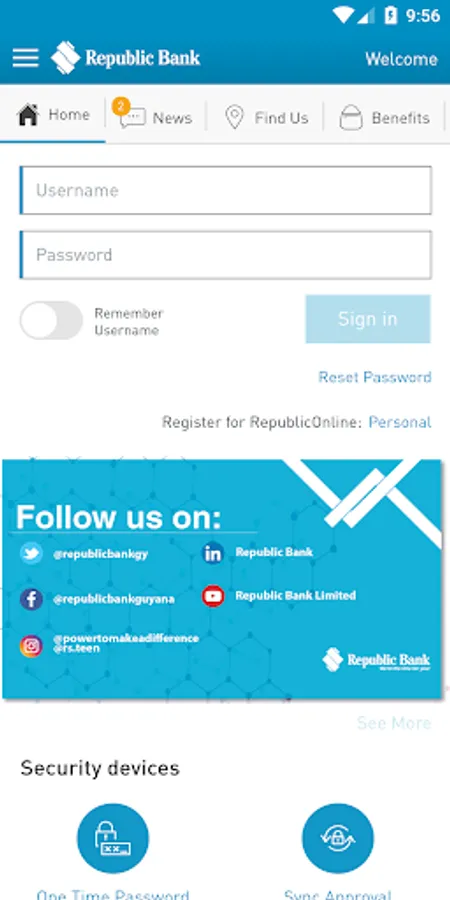 Anyone can download the app and view the Public Page to see our Benefits, News and locate branches. To log on to the RepublicMobile Guyana you need to be an Internet Banking customer