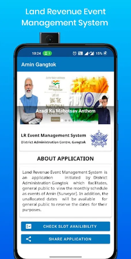 Land Revenue Event Management System is an application initiated by District Administration Gangtok which facilitates, the general public to view the monthly schedule as events of Amin (Surveyor). In addition, the unallocated dates will be available for the general public to reserve the dates for their purposes.